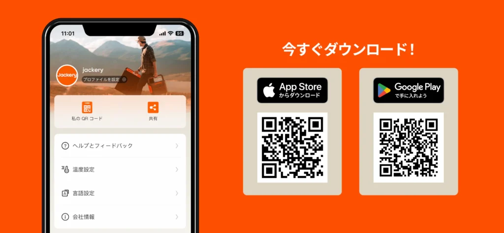 Jackery 1000 NewのBluetooth機能を使うには、まずJackeryアプリをスマホにダウンロードして、アカウント登録が必要です。なんか面倒くさそうって思いましたが、普段スマホにアプリを入れて使うのとまったく一緒で簡単でした。